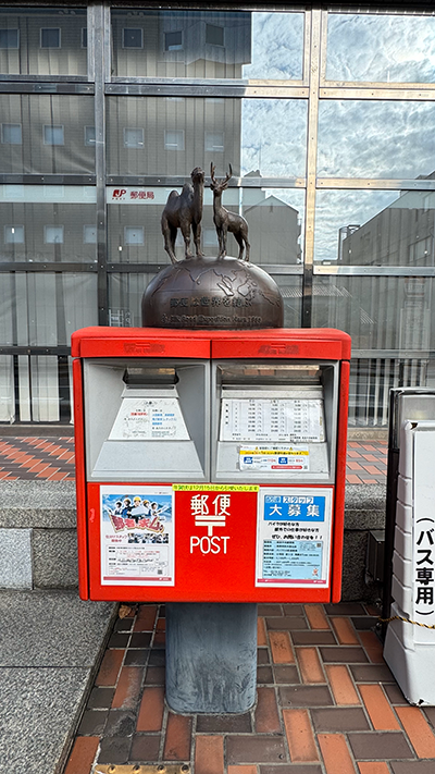 奈良中央局の前のポストは鹿さんのモニュメント付きでした☺