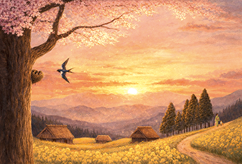 | ※ とっても大事な 注意点が1つ ツバメが桜の木に巣を作っているように描いていますが、実際にはツバメは木に巣作りはしないそうです。この点、ご承知おきの上ご利用いただければ幸いです。 |
